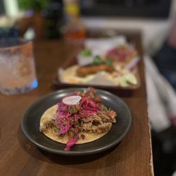 Loved this place. We were lucky to snag a table so highly recommend making reservations. The drinks were so strong and tasted so good! But the food was spectacular. My husband got the tacos, and three filled him up. I got the short rib and it was so soft and melt in your mouth. My favorite part was the service. When our food was served they told us a little about where everything came from and that was lovely and enough to get us more hungry!